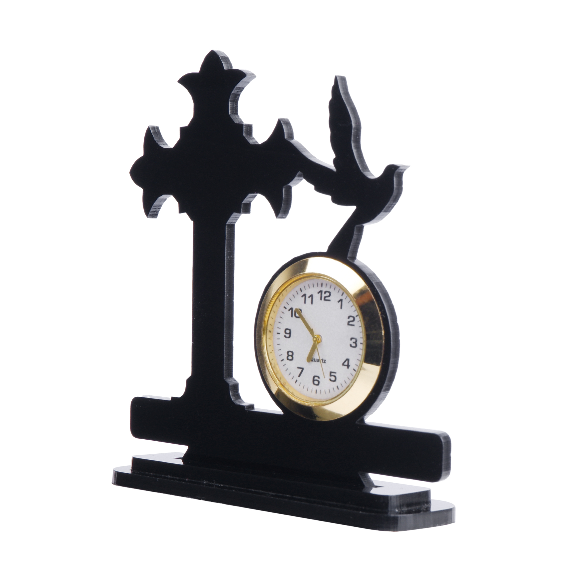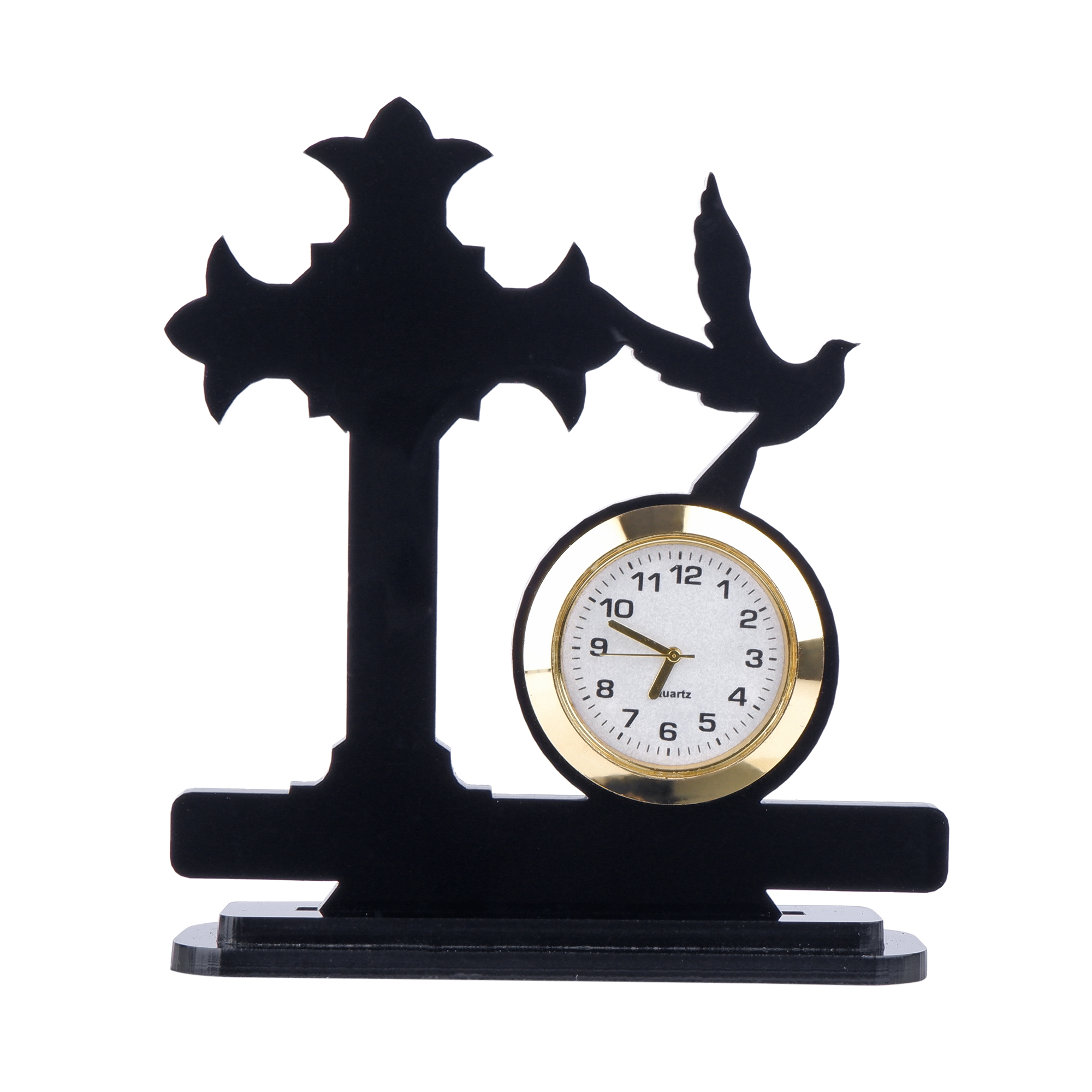 To the left of the cross is a delicately crafted bird, representing the Holy Spirit. In Christian symbolism, the bird—often portrayed as a dove—signifies purity, peace, and divine guidance. Together, the cross and the bird form a balanced composition that radiates meaning without overwhelming the visual space.